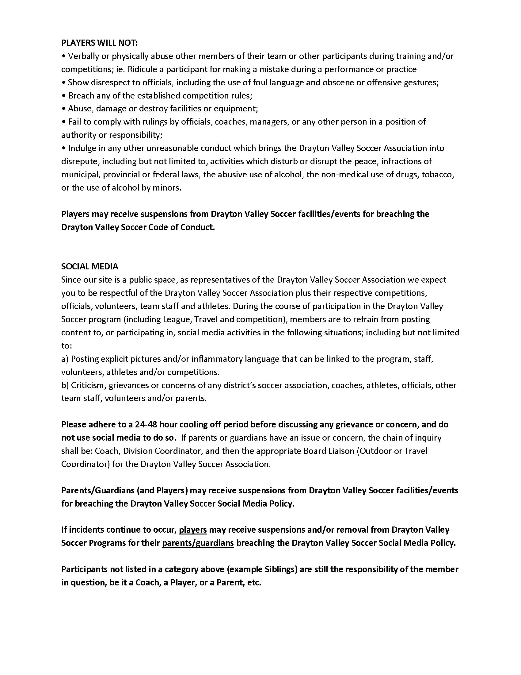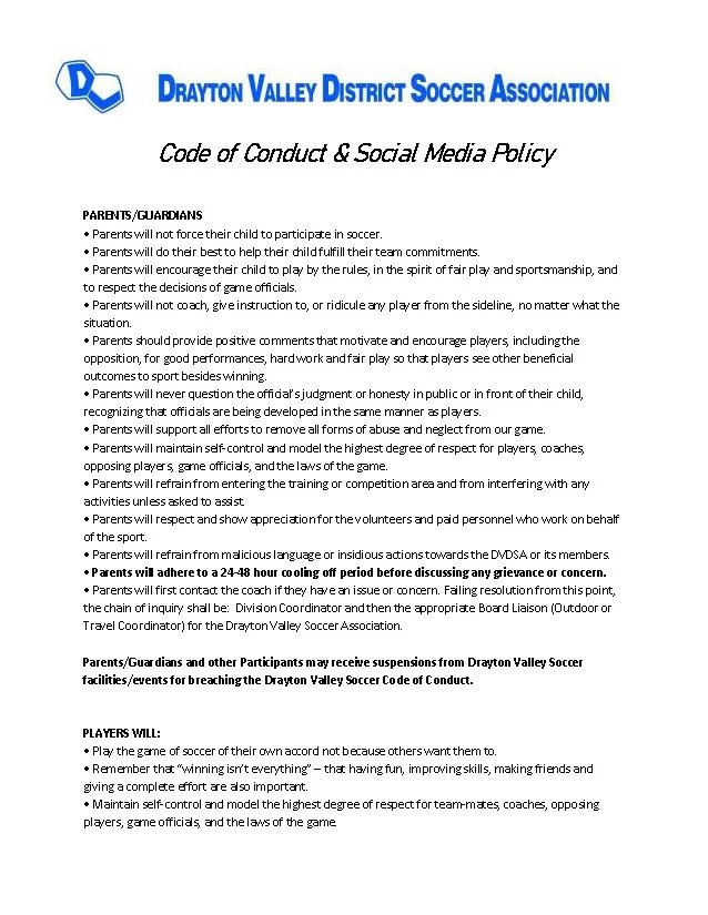 The Drayton Valley District Soccer Association operates under the auspices of the Northwest Central Soccer Association. For a further list of policies please visit their website at: https://www.nwcsoccer.com/articles